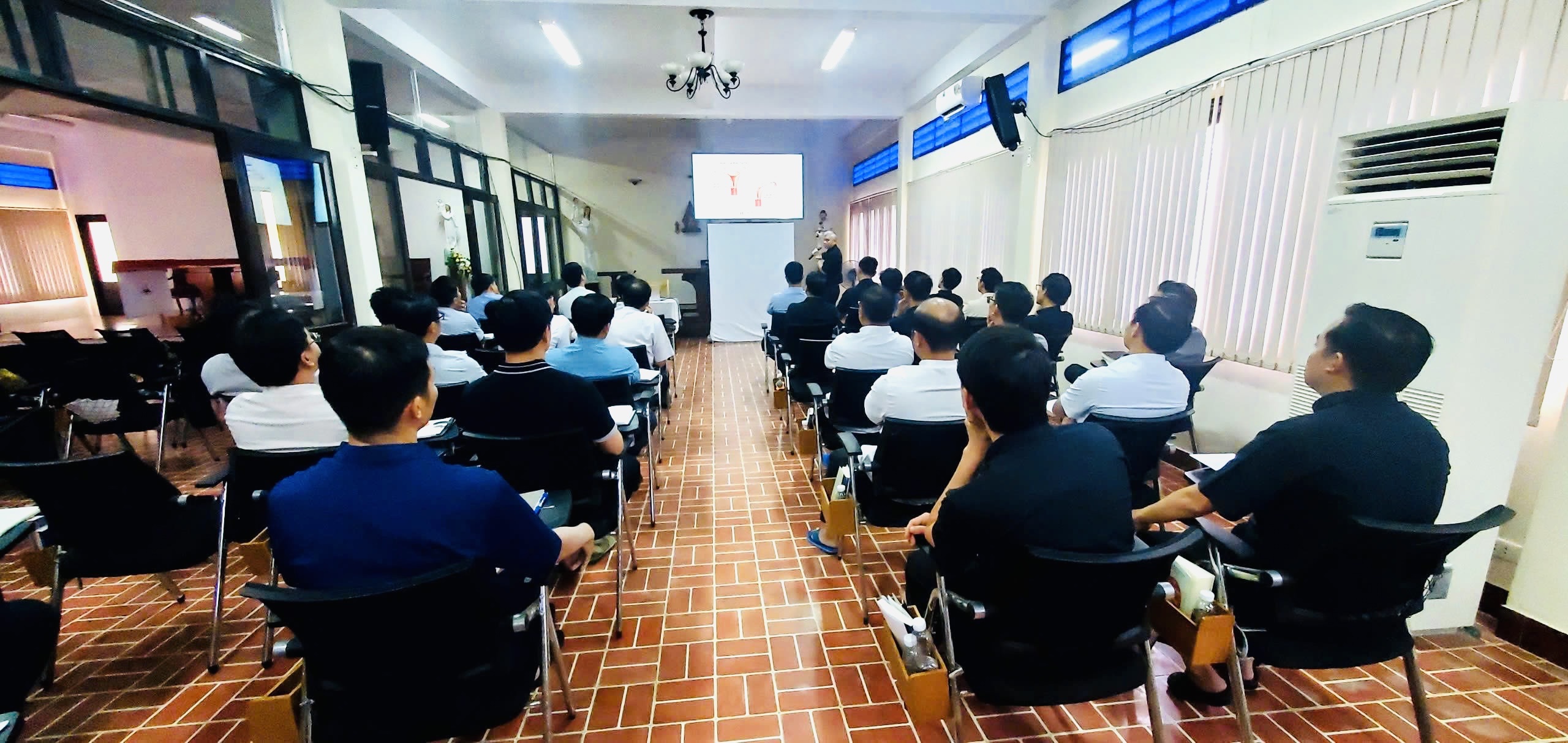 Thứ Ba ngày 19.8.2025 – Buổi sáng, Cha Phêrô Trần Xuân Huệ – Giám đốc Chủng viện Thánh Tôma trình bày và cho quý cha thảo luận chuyên đề mục vụ gia đình.