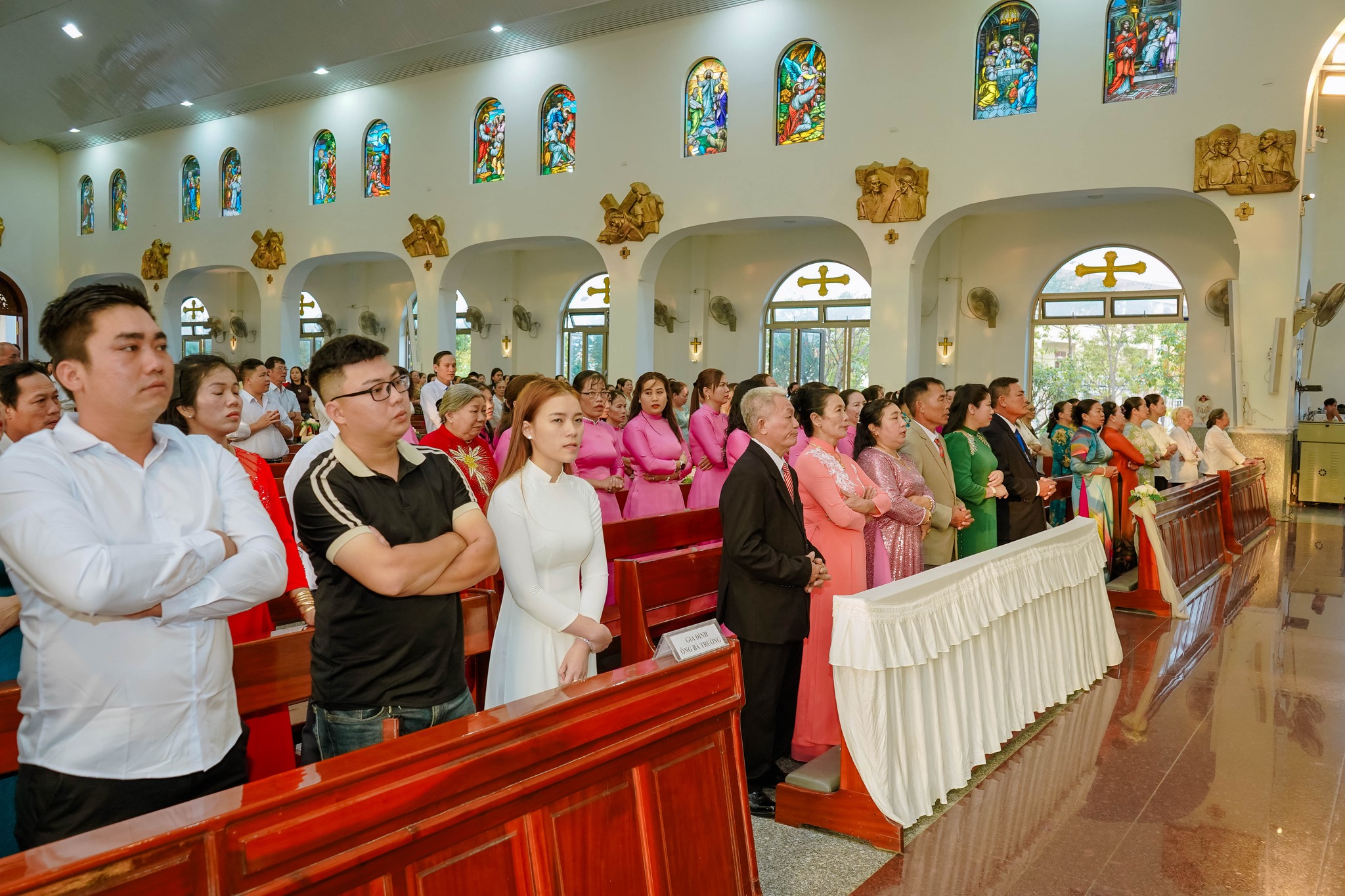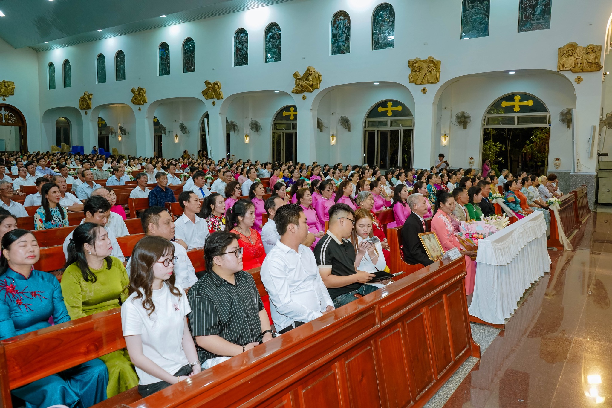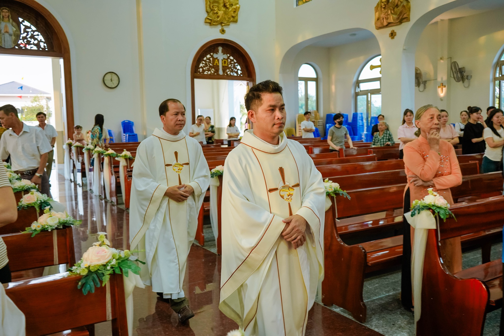 Đồng tế với Cha chánh xứ có Cha phó Gioan B. Ngô Xuân Quốc. Thánh lễ diễn ra trong bầu khí trang nghiêm, ấm áp, với sự hiện diện của các con cháu trong gia đình cùng đông đảo cộng đoàn dân Chúa trong giáo xứ.