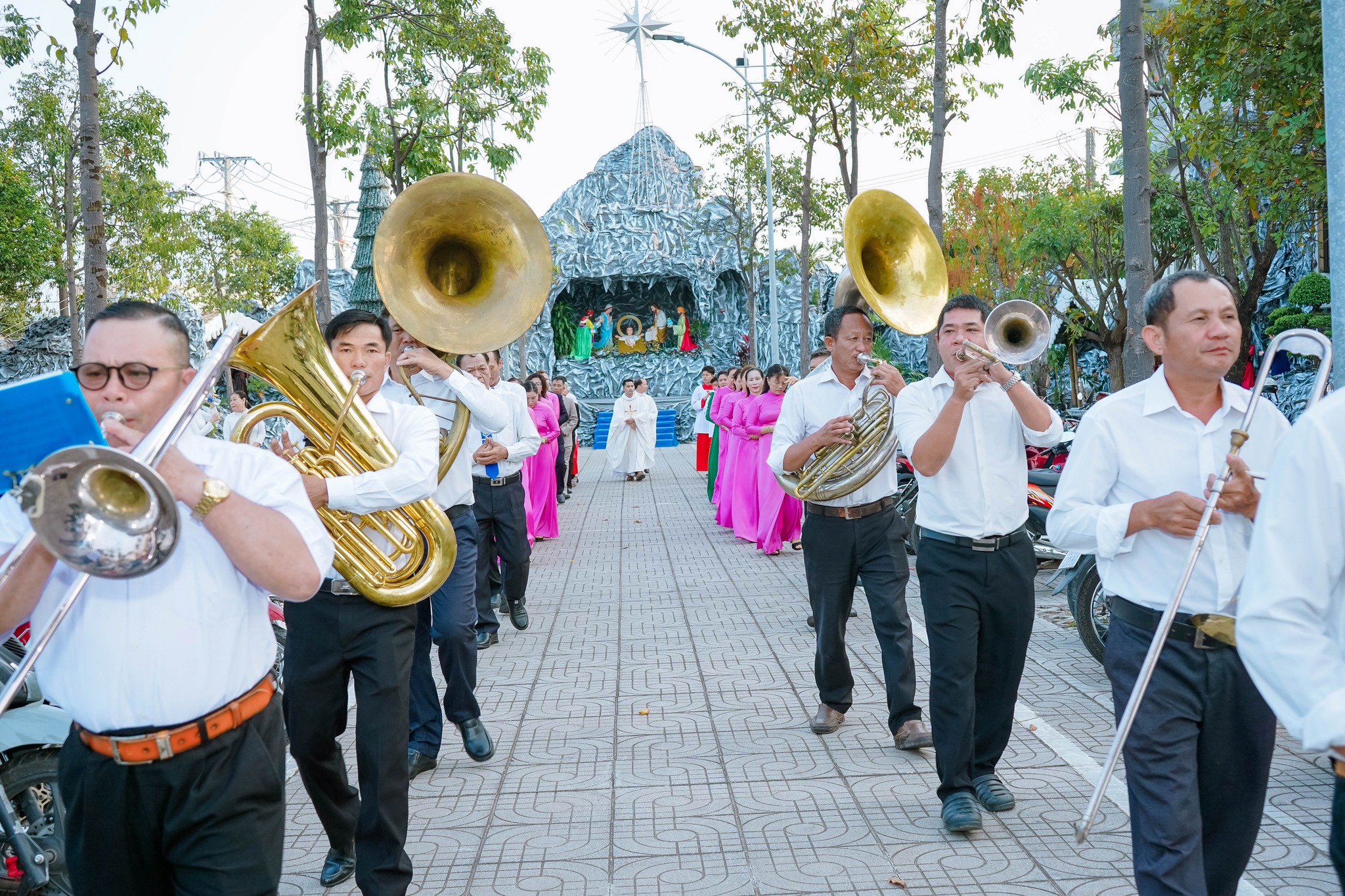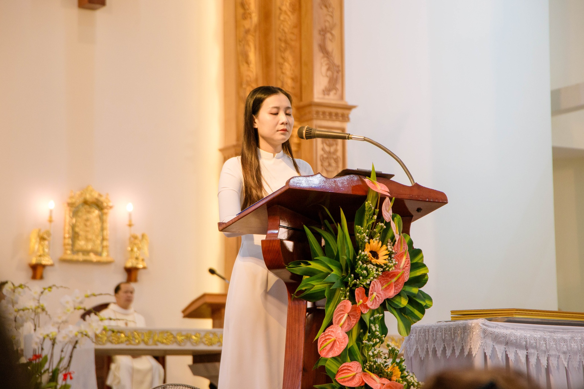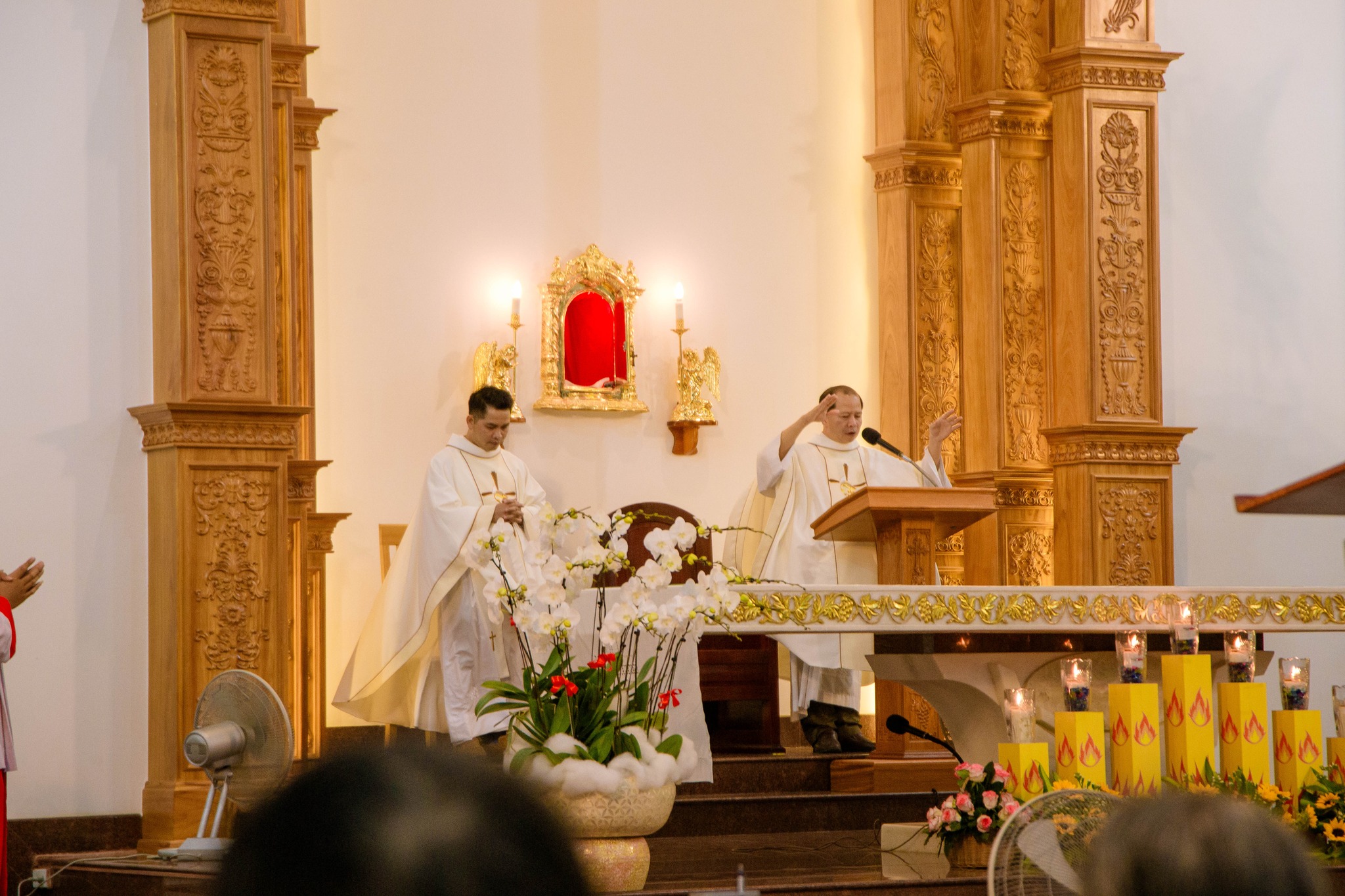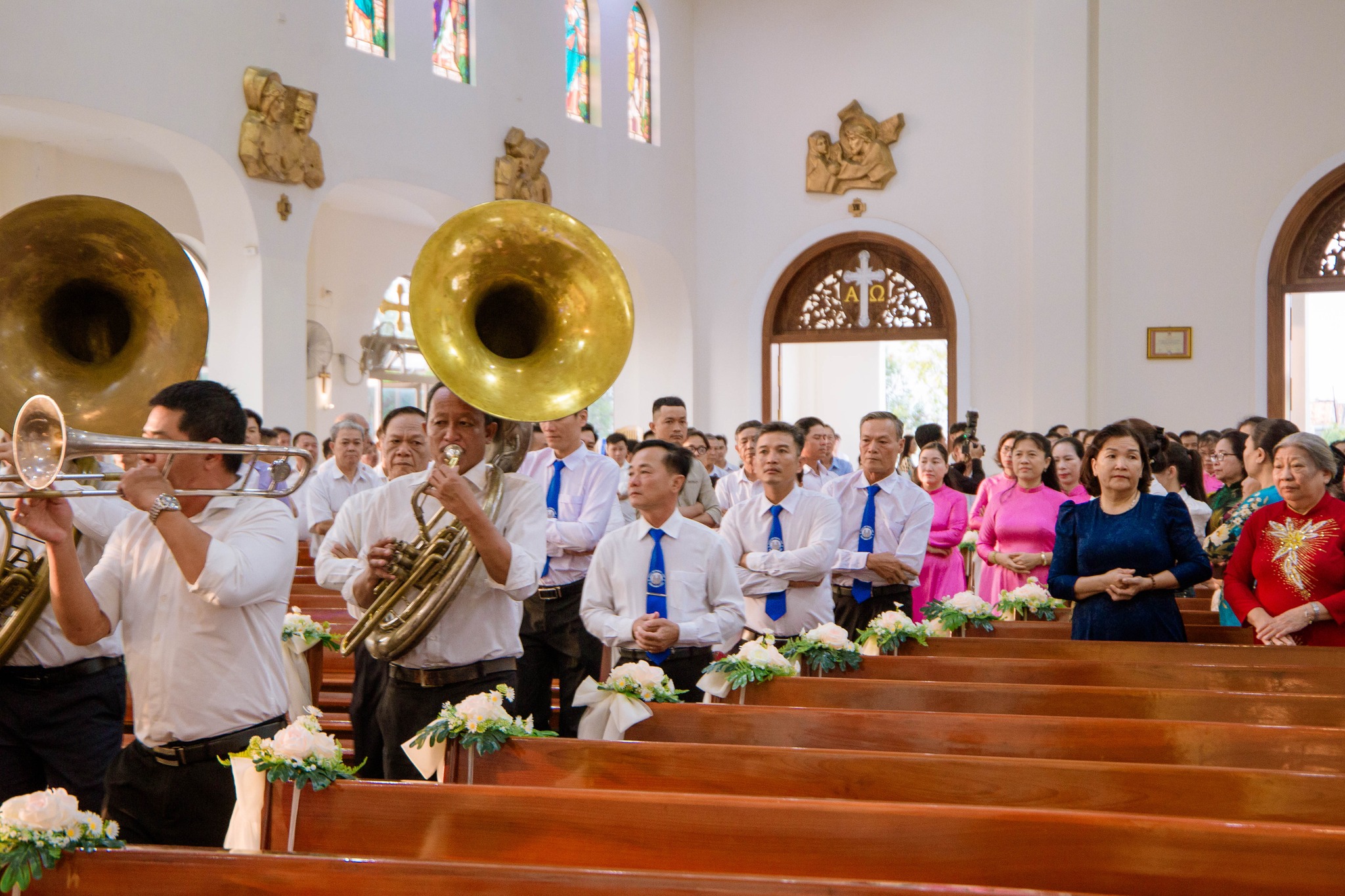 Đồng tế với Cha chánh xứ có Cha phó Gioan B. Ngô Xuân Quốc. Thánh lễ diễn ra trong bầu khí trang nghiêm, ấm áp, với sự hiện diện của các con cháu trong gia đình cùng đông đảo cộng đoàn dân Chúa trong giáo xứ.