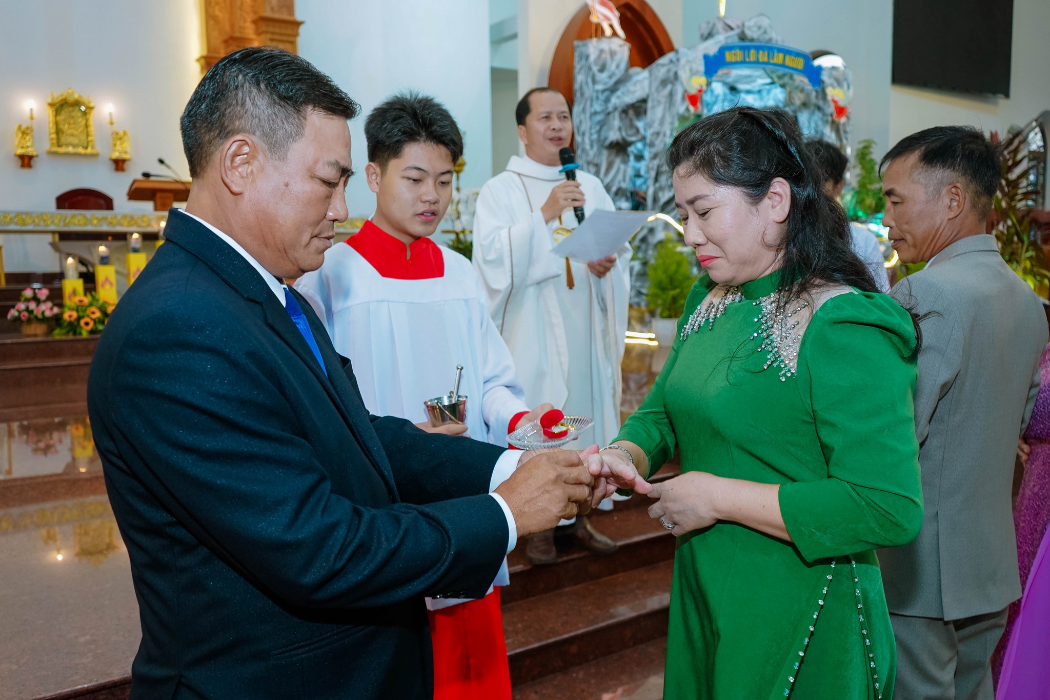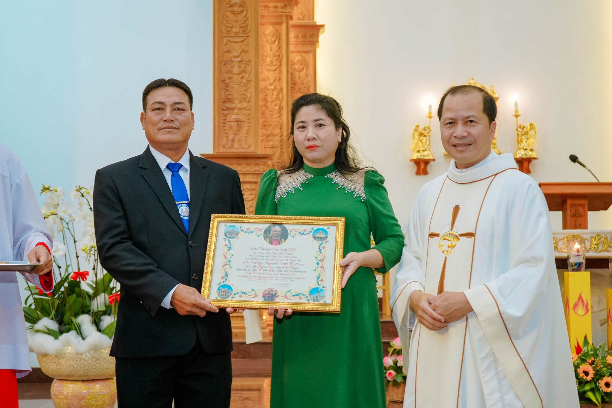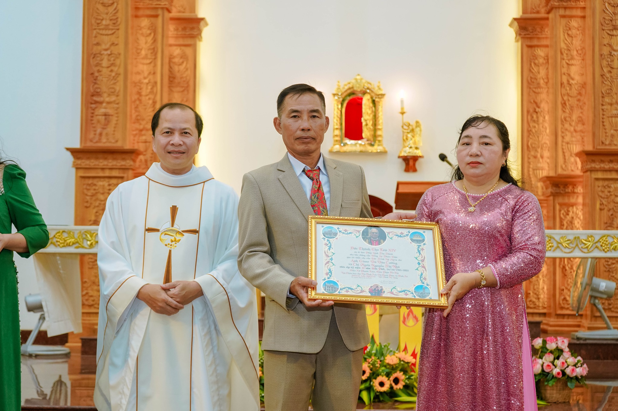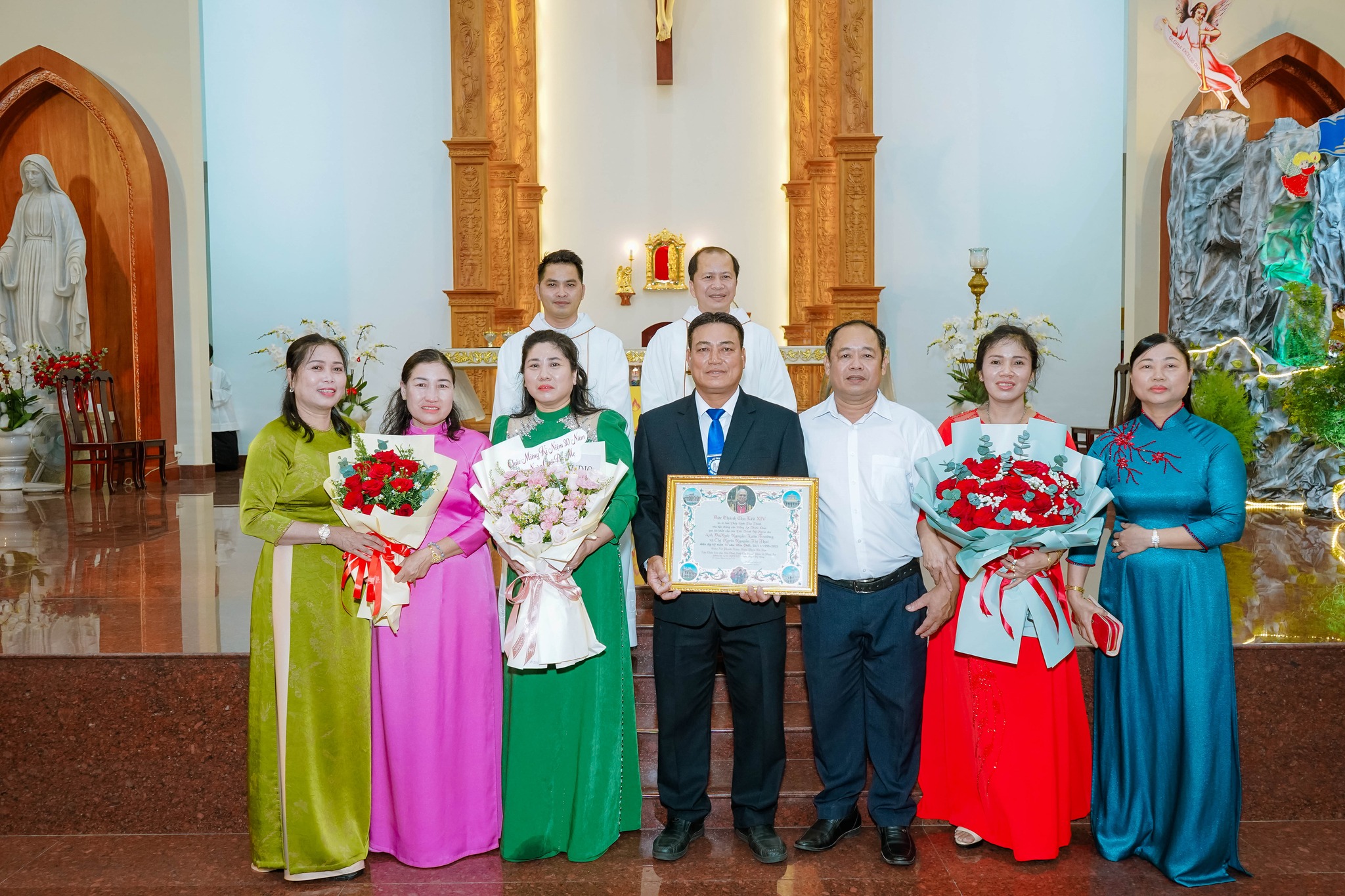 Trong Thánh lễ, giáo xứ hân hoan hiệp ý cầu nguyện và chúc mừng 03 gia đình kỷ niệm 30 năm, 40 năm và 45 năm hôn phối, tạ ơn Thiên Chúa vì hồng ân đời sống hôn nhân và gia đình.